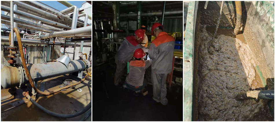 6月22日,杭州臨安某公司要求清洗換熱器兩側(cè),冠潔工程隊(duì)又前往進(jìn)行螺旋板換熱器清洗。