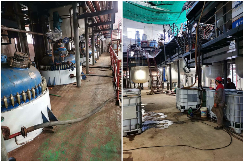 40 多個反應(yīng)釜清洗 ,石墨換熱器化學(xué)清洗 ,已連續(xù)施工 4天,工程仍在繼續(xù) ..